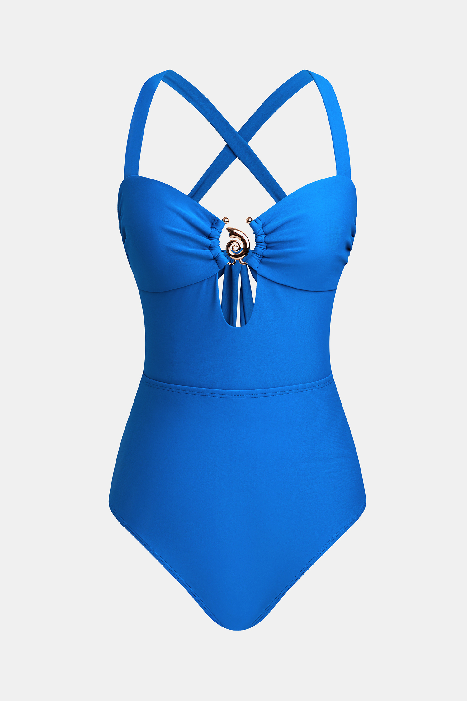 Der blaue Badeanzug bringt frischen Wind in Ihren Strand-Look! Mit seinem herzförmigen Ausschnitt, den überkreuzten Trägern und dem zarten Charme-Detail schmeichelt dieser Badeanzug aus jedem Blickwinkel. Der mittlere Beinausschnitt und die moderate Bedeckung des Hinterns machen ihn mühelos tragbar.