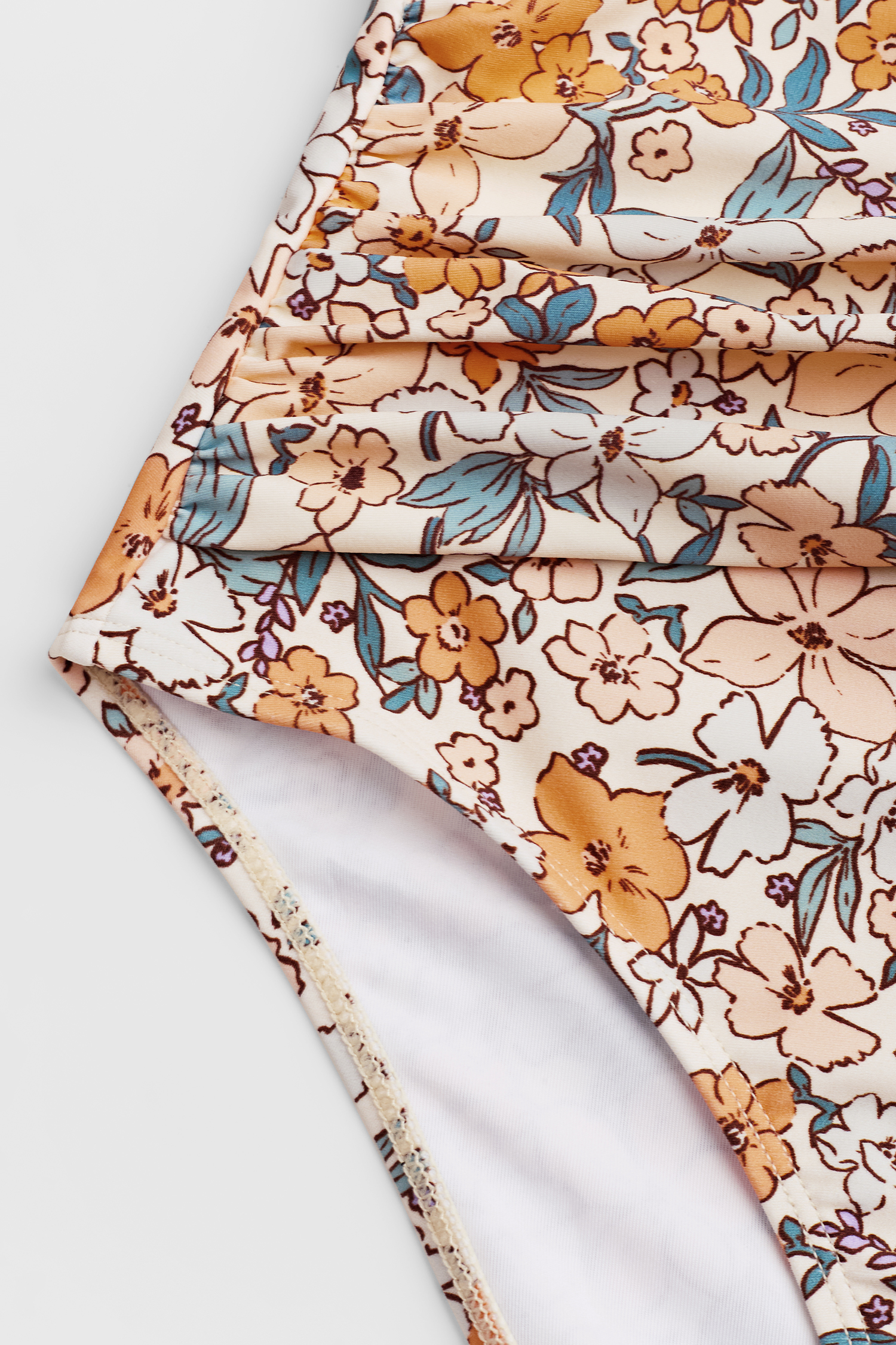 Wir stellen Ihnen unseren Einteiler mit gewickelten Ausschnitten in Gelb vor, eine lebendige und verspielte Ergänzung Ihrer Bademodenkollektion. Mit seinem bezaubernden Ditsy-Print und dem stilvollen gewickelten Ausschnitt-Design wird dieser Badeanzug mit Sicherheit die Aufmerksamkeit auf sich ziehen, wohin Sie auch gehen.